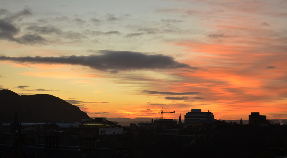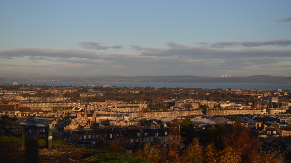 An icy layer of frost decorates the benches on top of the hill, and I pause to watch the sun peek out from behind Arthurs Seat, feeling a happy lightness to have this marvellous city view all to myself for a short time in time.