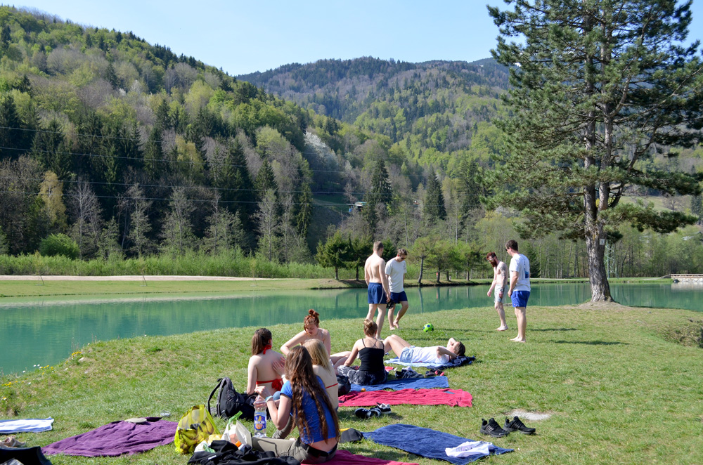 On our very last day together as a team, we took a trip down to the Lake Bozel further down the valley at 800m for sunshine, beers, paddling, and an exploration of the old town (and a cheeky geocache, obviously!).