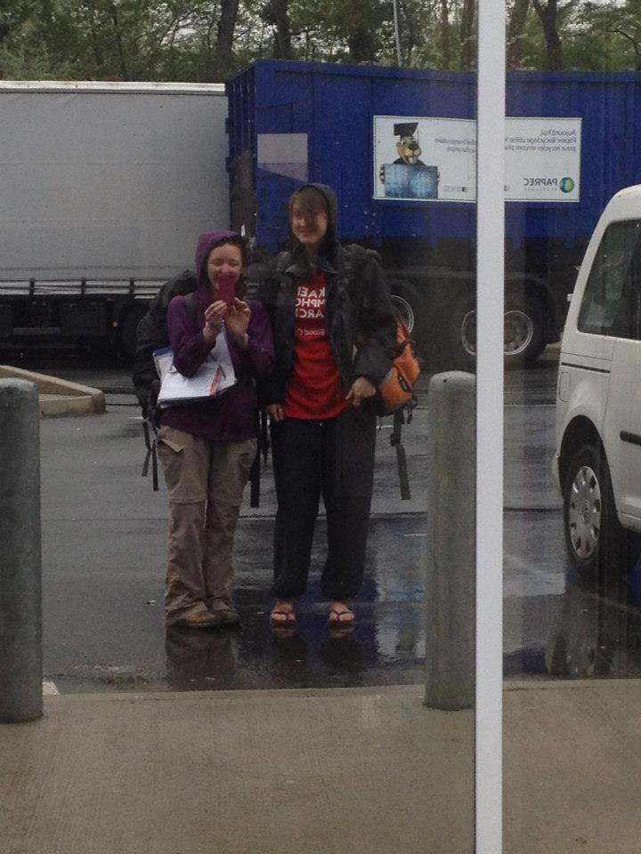 Hanging out at the service station, we grabbed a coffee and tried to make ourselves look slightly less drowned rat-ish.