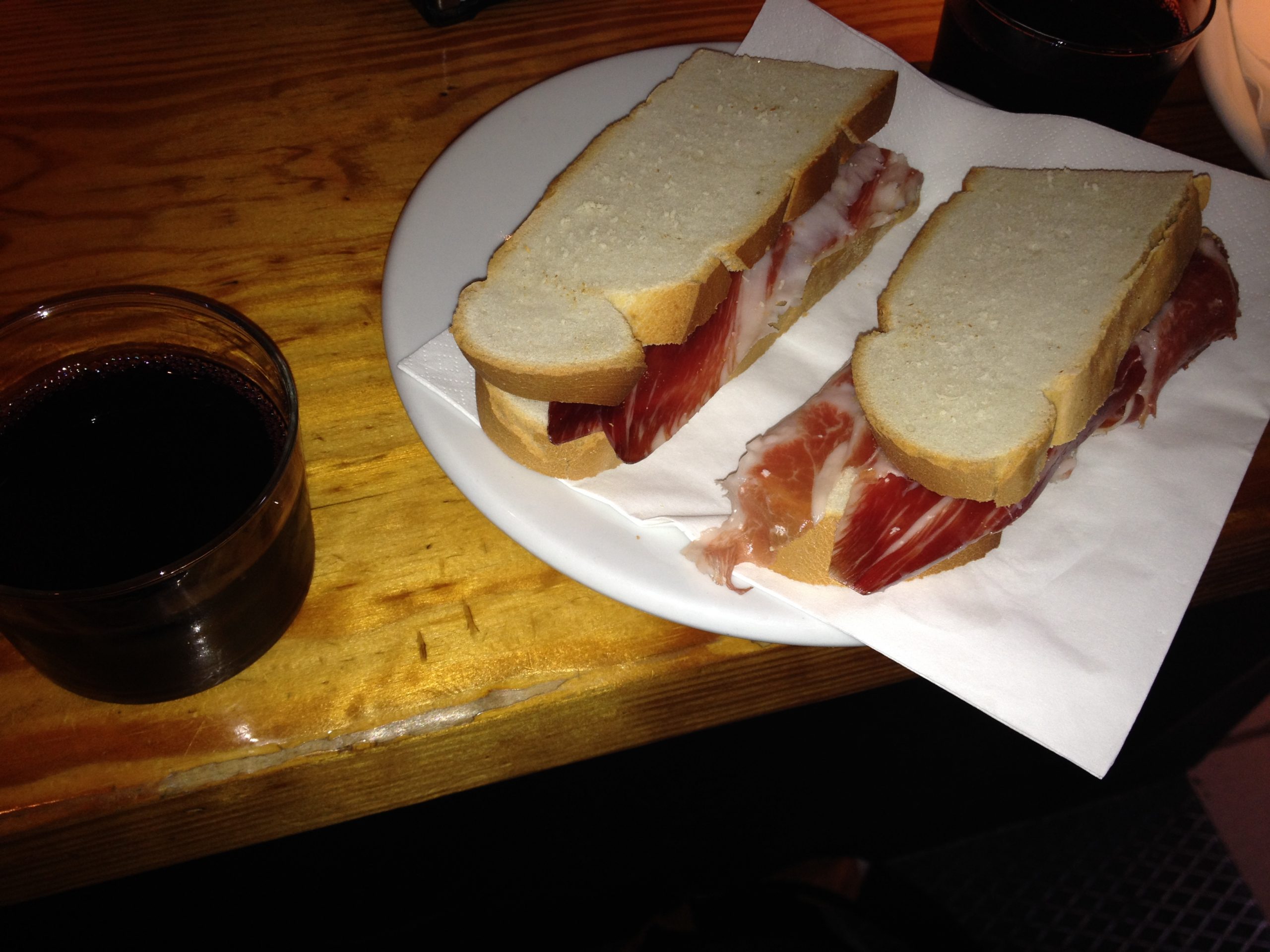 Despite speaking very little Spanish, we muddled through and they took us to this amazing local jamon (cured ham) bar far out of town and treated us to amazing jamon sandwiches and chilled red wine – legends!