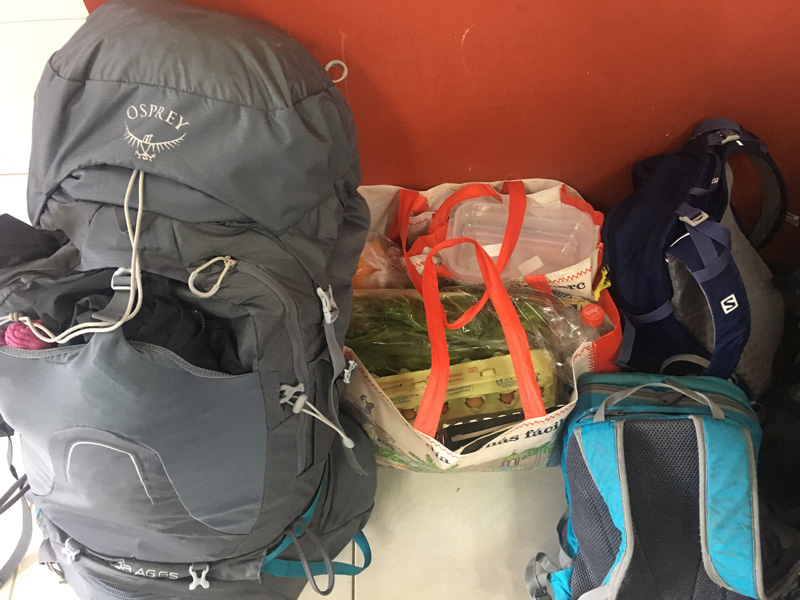 A big food shop in El Calafate ready for 4 days hiking in El Chalten, Patagonia