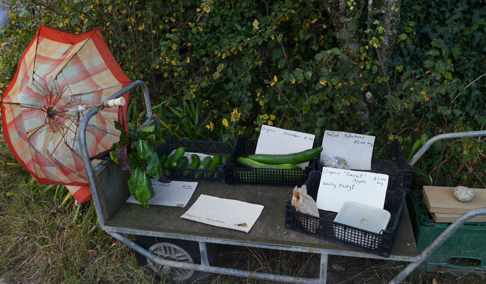 We landed on the tiny jetty and made our way up to the single track road, where I got ridiculously excited about an awesome honesty box from Veronica’s Farm, full to the brim with homemade jams and dried herbs. Whilst I dithered over which jam to buy, Dad had struck up a conversation with a lady heaving kitchen supplies and oil into her car on the harbour dock.
