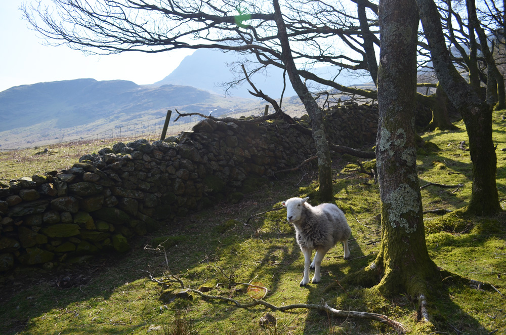 Beyond the woods, the path opens out again with the towering Fleetwith Pike an awe-inspiring sight. Cute little Herdwick sheep graze and bounce among the pastures.
