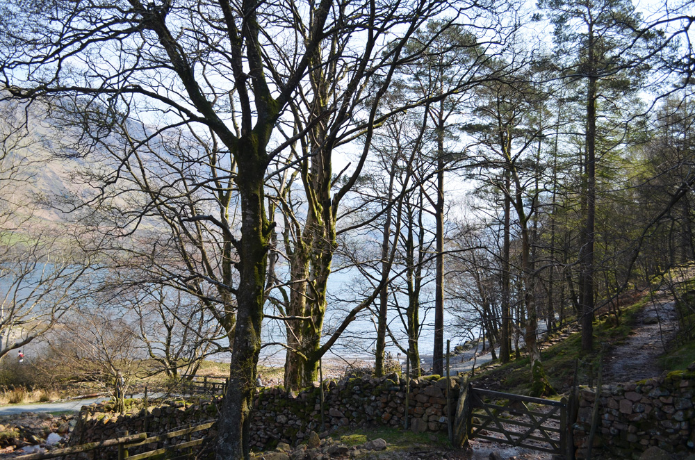 A detour it was, then. The map indicated to go back up towards Buttermere and take the path towards the waterfall instead. Despite the detour, the path afforded pretty views back down towards Buttermere.